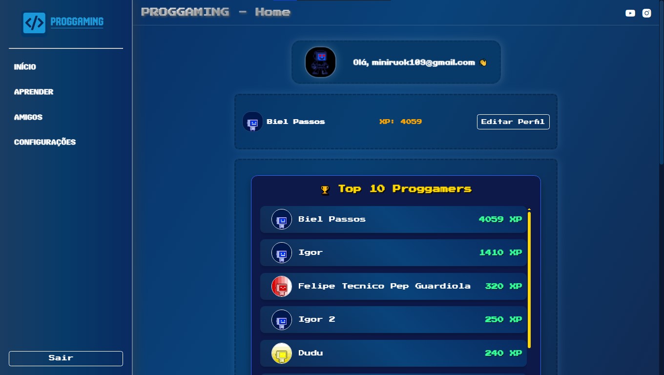 Você logado, já está pronto para desfrutar o Proggaming.